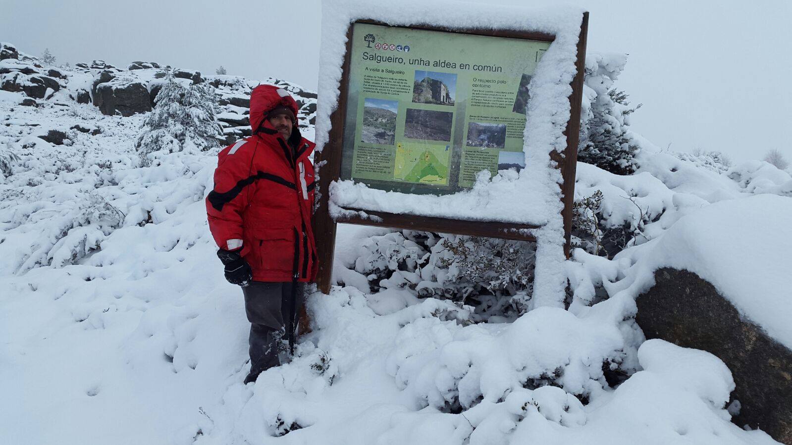 pola tarde, baixa desde Cimadevila a Morena, un home cuberto cunha manta e